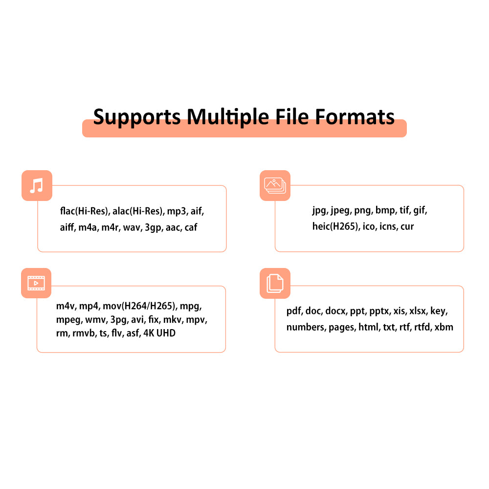With dual USB-A and USB-C connectors, the iXflash works effortlessly with iPhone, iPad, Mac, PC, and Android devices. Back up, transfer, and manage photos, videos, and files with ease, or record photos and videos directly to the drive to free up phone storage instantly. Media lovers can enjoy 4K video playback and Hi-Res audio formats such as FLAC.