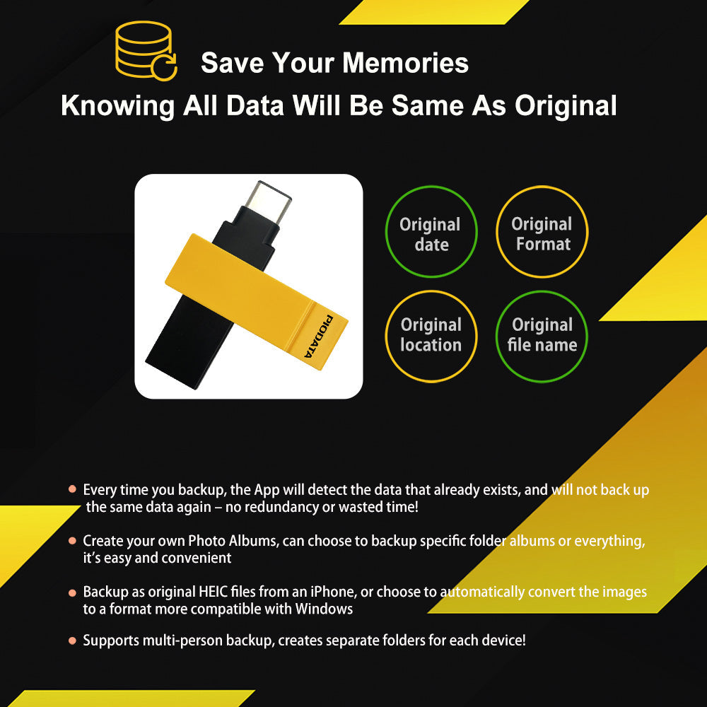 The PioData iXflash 256GB USB 3.2 Gen1 Flash Drive in Black/Yellow combines bold style with high performance, making it ideal for students, creators, travelers, and active iPhone users who want storage that stands out. It is the world’s first Apple MFi-certified iPhone and iPad flash drive without a Lightning connector, fully compliant with Apple’s official iOS protocol.