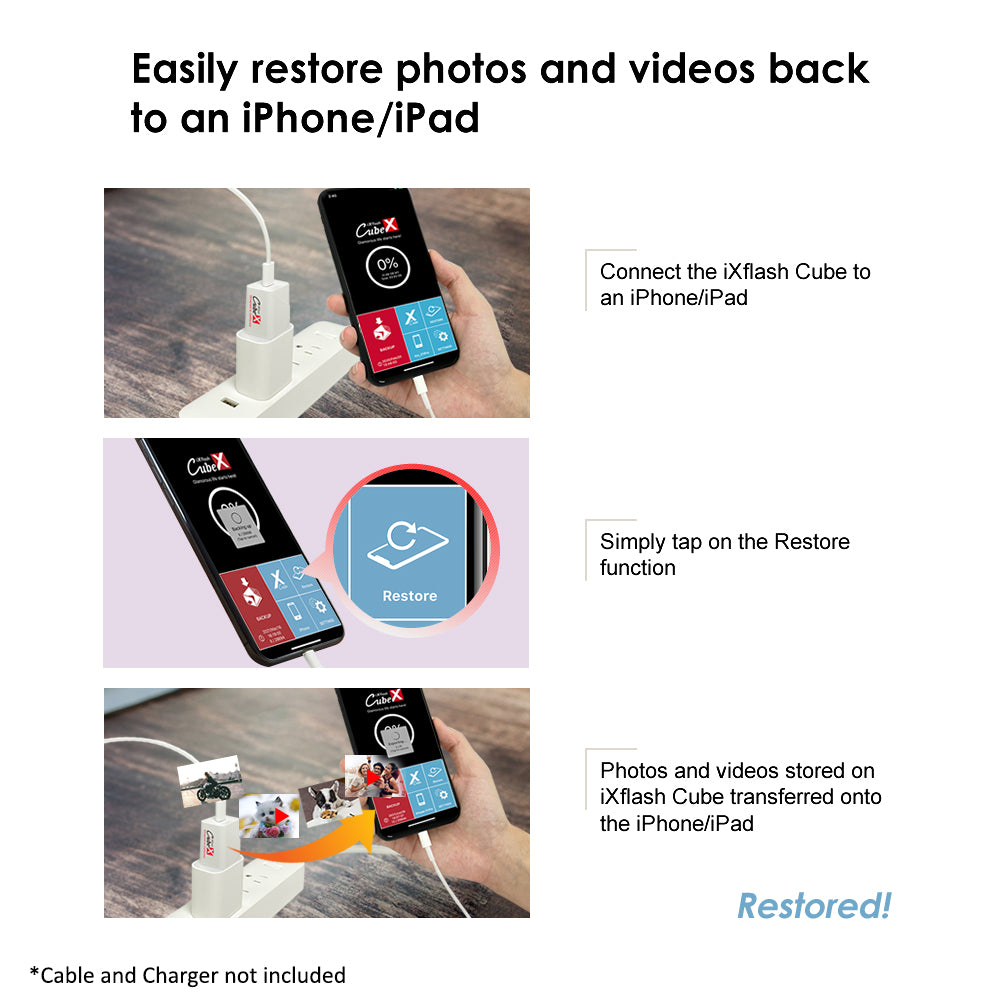 Built for reliability and security, the iXflash Cube avoids duplicate backups, organizes content by user, and protects your memories from device failure or accidental deletion. Combining fast charging, automatic backup, and secure external storage, it’s an ideal picture keeper for iPhone and iPad users who want simple, dependable photo protection.